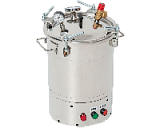 Электрический автоклав из нержавеющей стали с полностью автоматизированным процессом стерилизации. Оснащен электрическим блоком управления (ЭБУ) с возможностью стерилизации в 4 автоматических режимах "Мясо", "Птица", "Рыба", "Компот". В автоклаве предусмотрены автоматические режимы для жестяных банок и реторт-пакетов. Есть возможность сохранения до 10 собственных программ стерилизации для каждого вида упаковки.